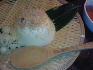 たっぷりかけたこの味噌、甘くて美味しいです。