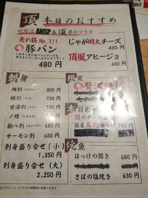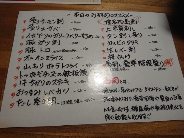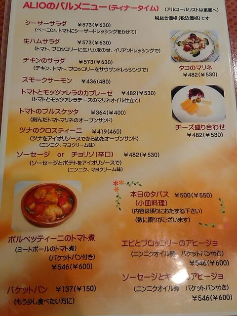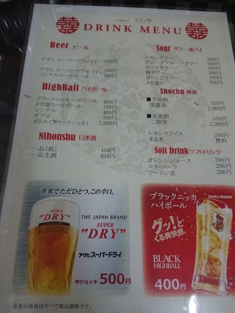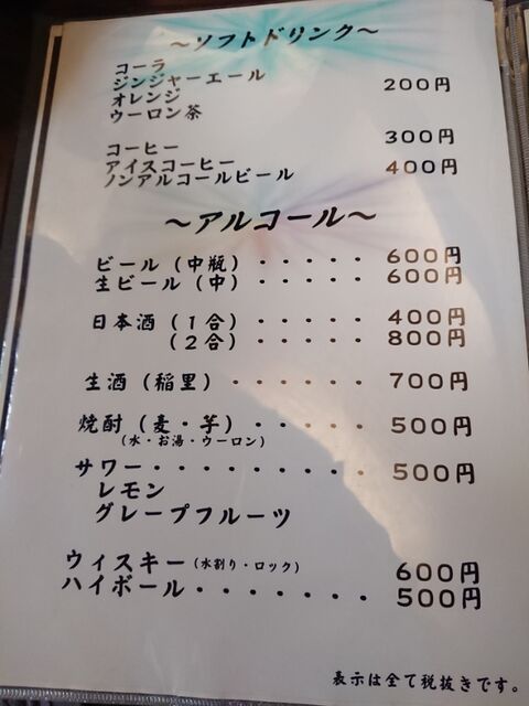 着いて早速メニューをチェック。