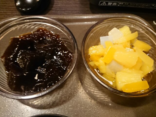 途中、海苔や漬け物、奴を挟みながら食べて