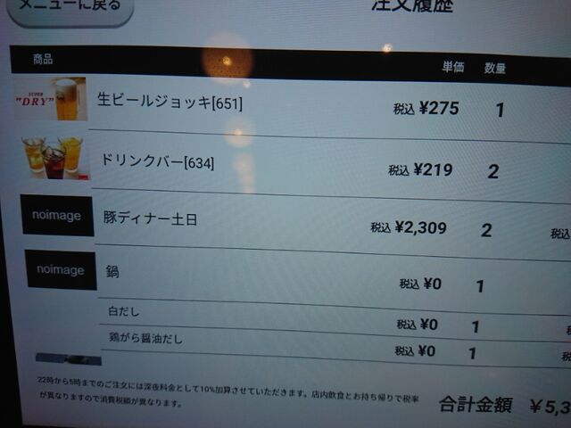 ラストオーダー直前の入店です。
