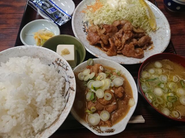 しょうが焼肉定食ともつ煮込み(小)