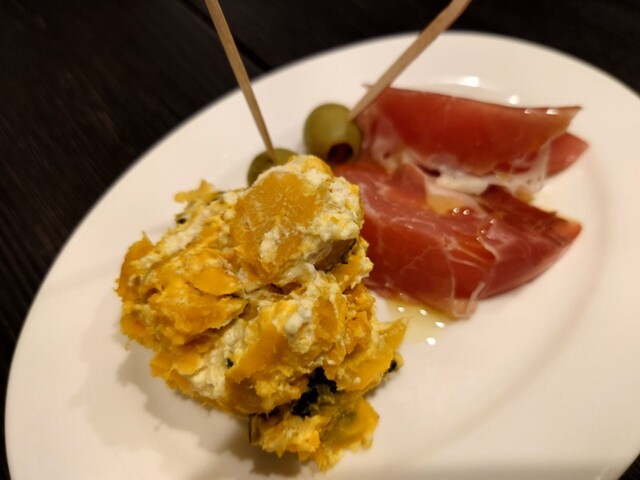 かぼちゃサラダと生ハムとオリーブ